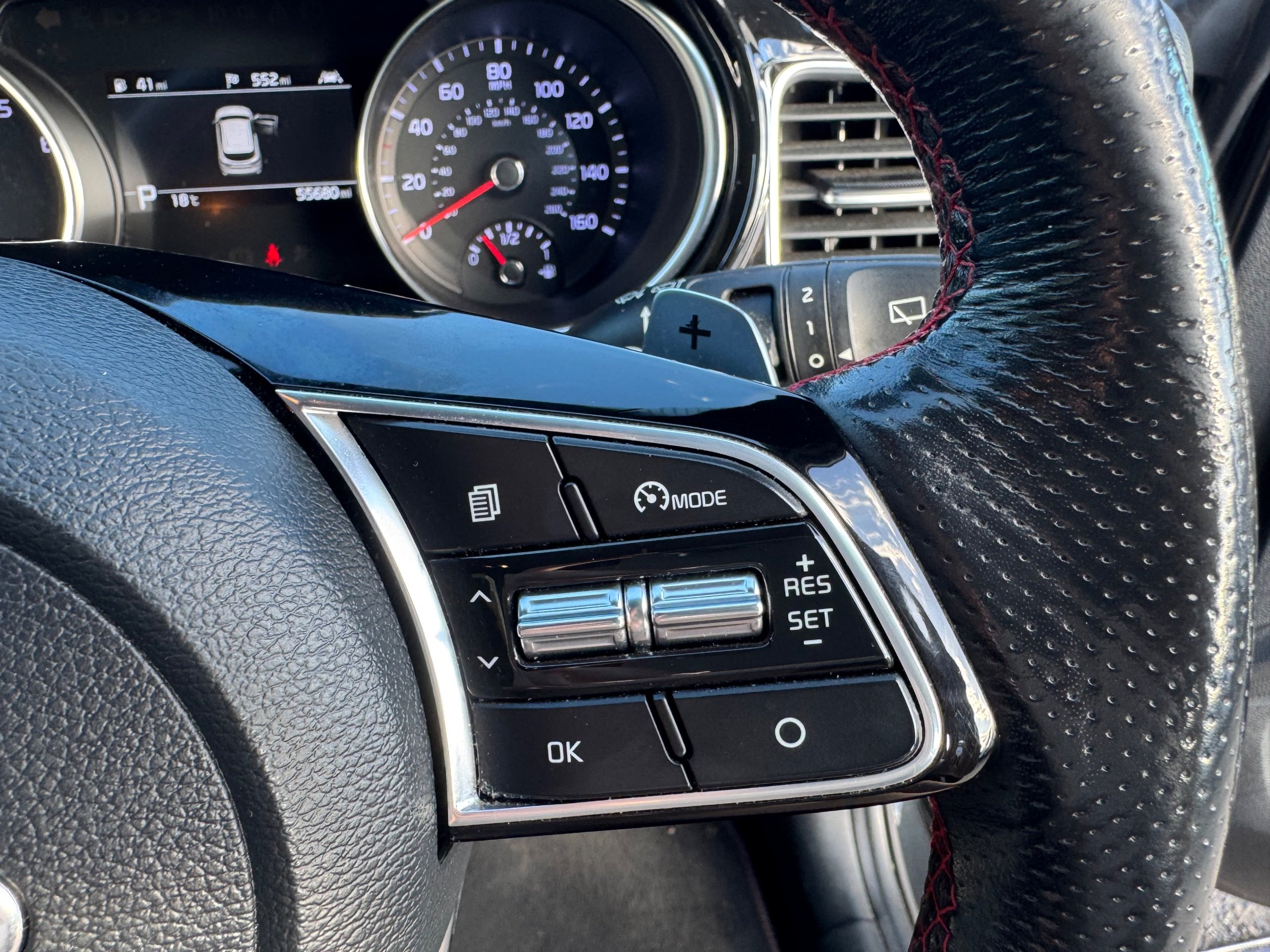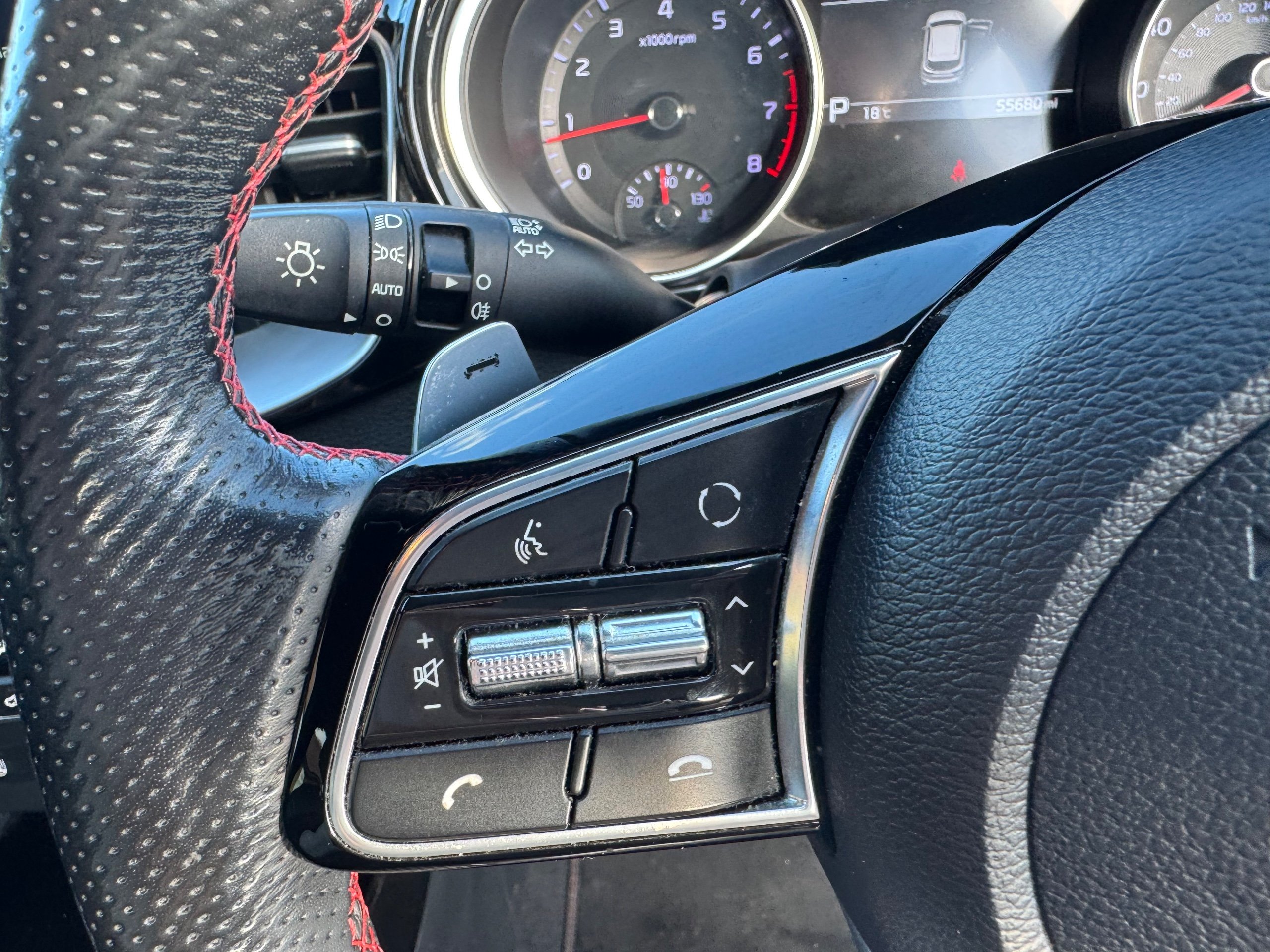- Leather D-Cut Steering Wheel with Red Stitching