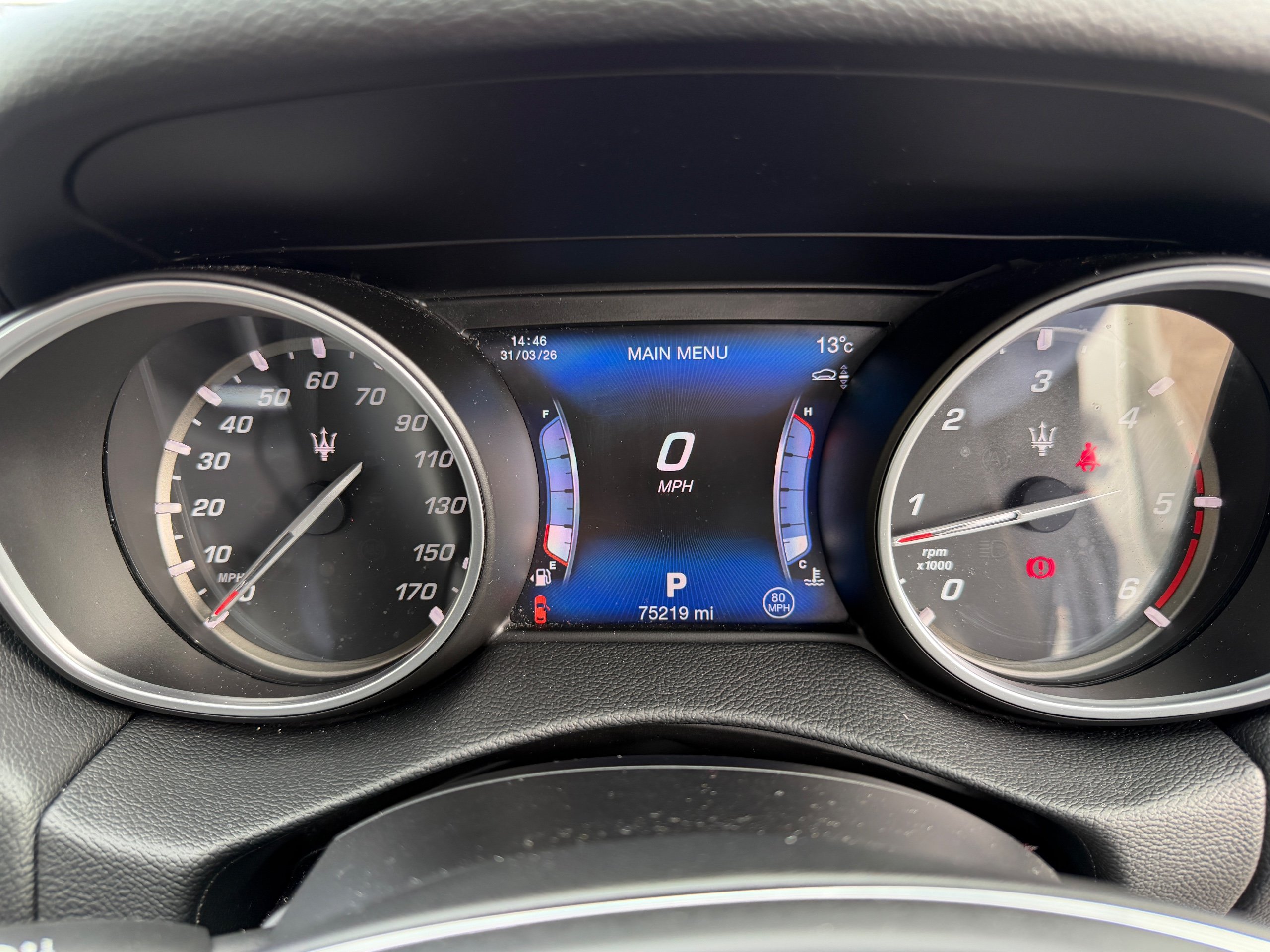 - Instrument Cluster Dials in Maserati Blue with White Backlighting