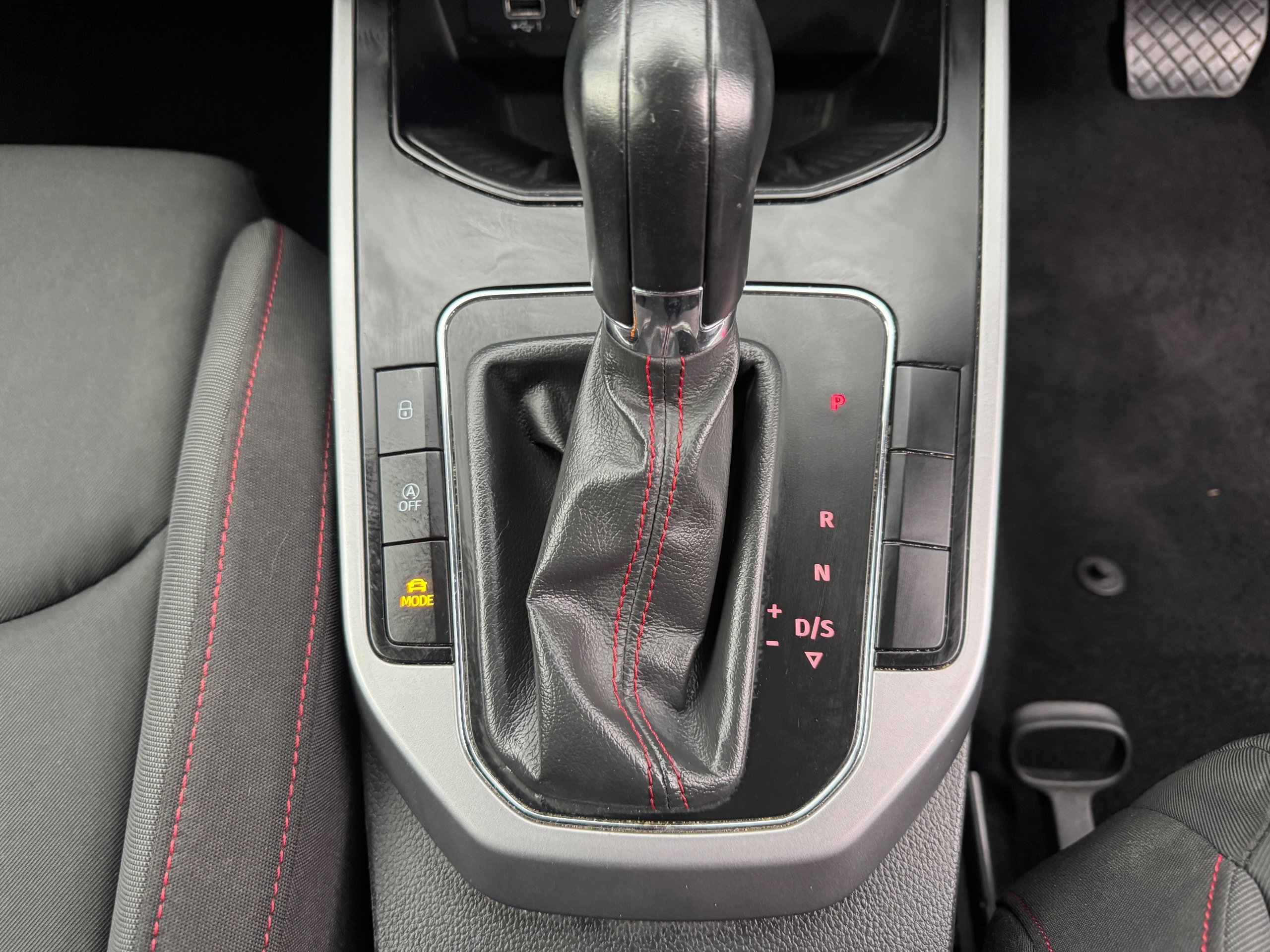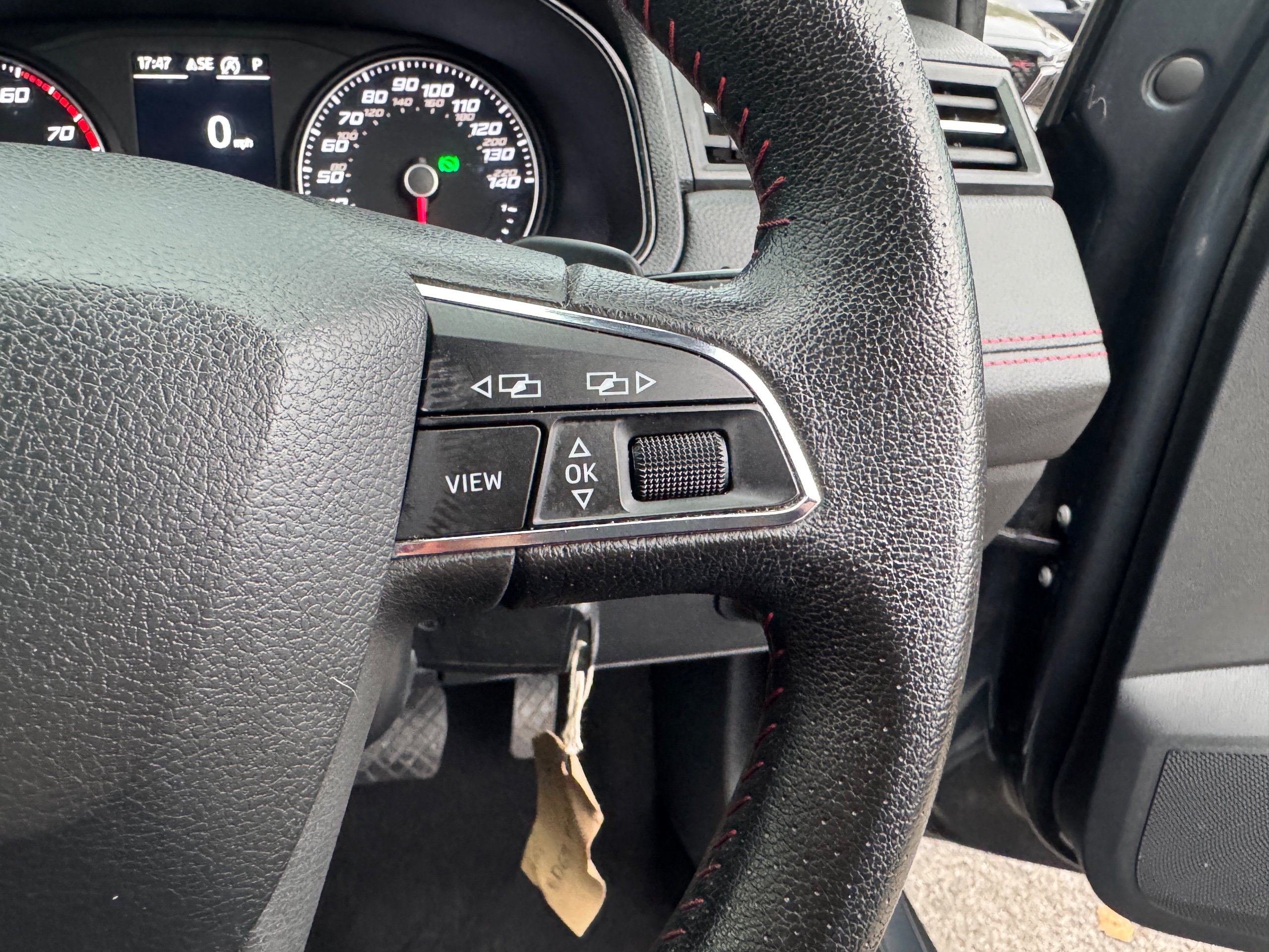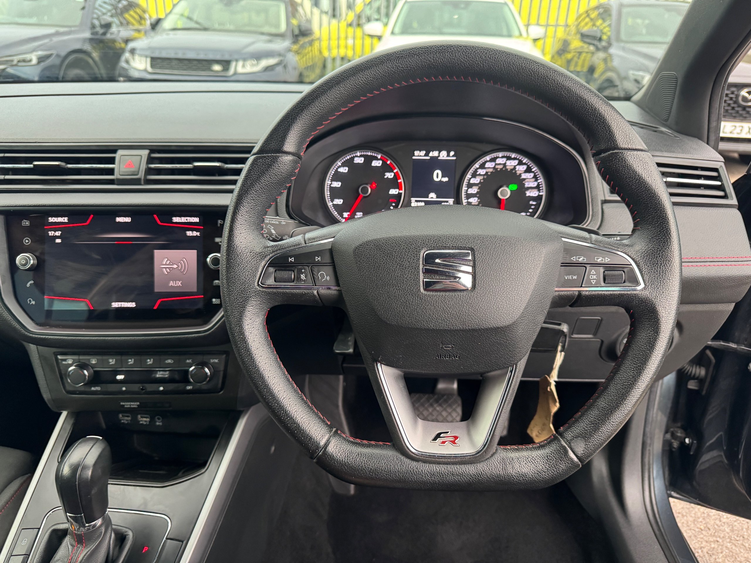 - Perforated Leather Flat-Bottomed Steering Wheel with Red Stitching and FR Logo with Leather Gear Knob