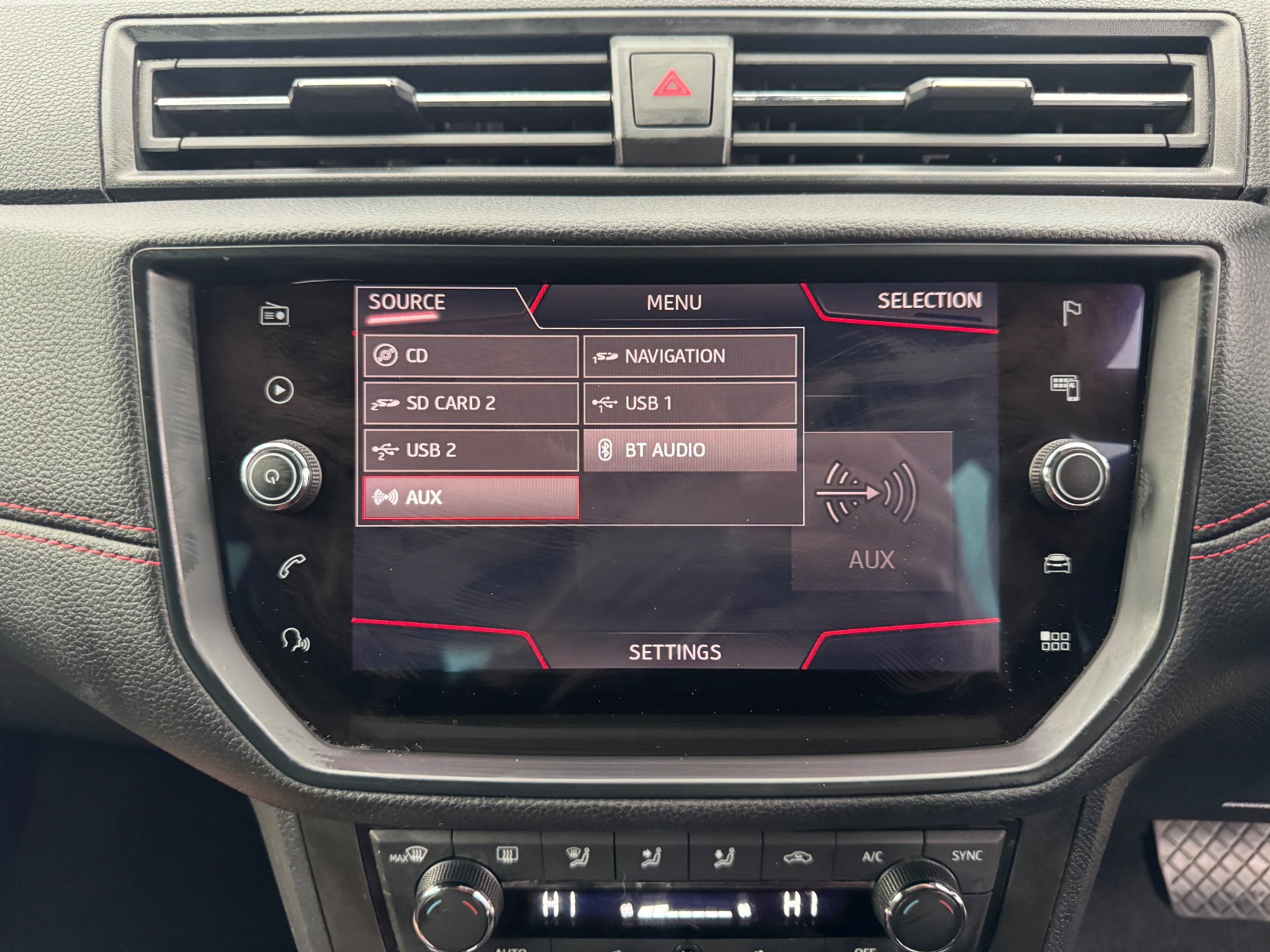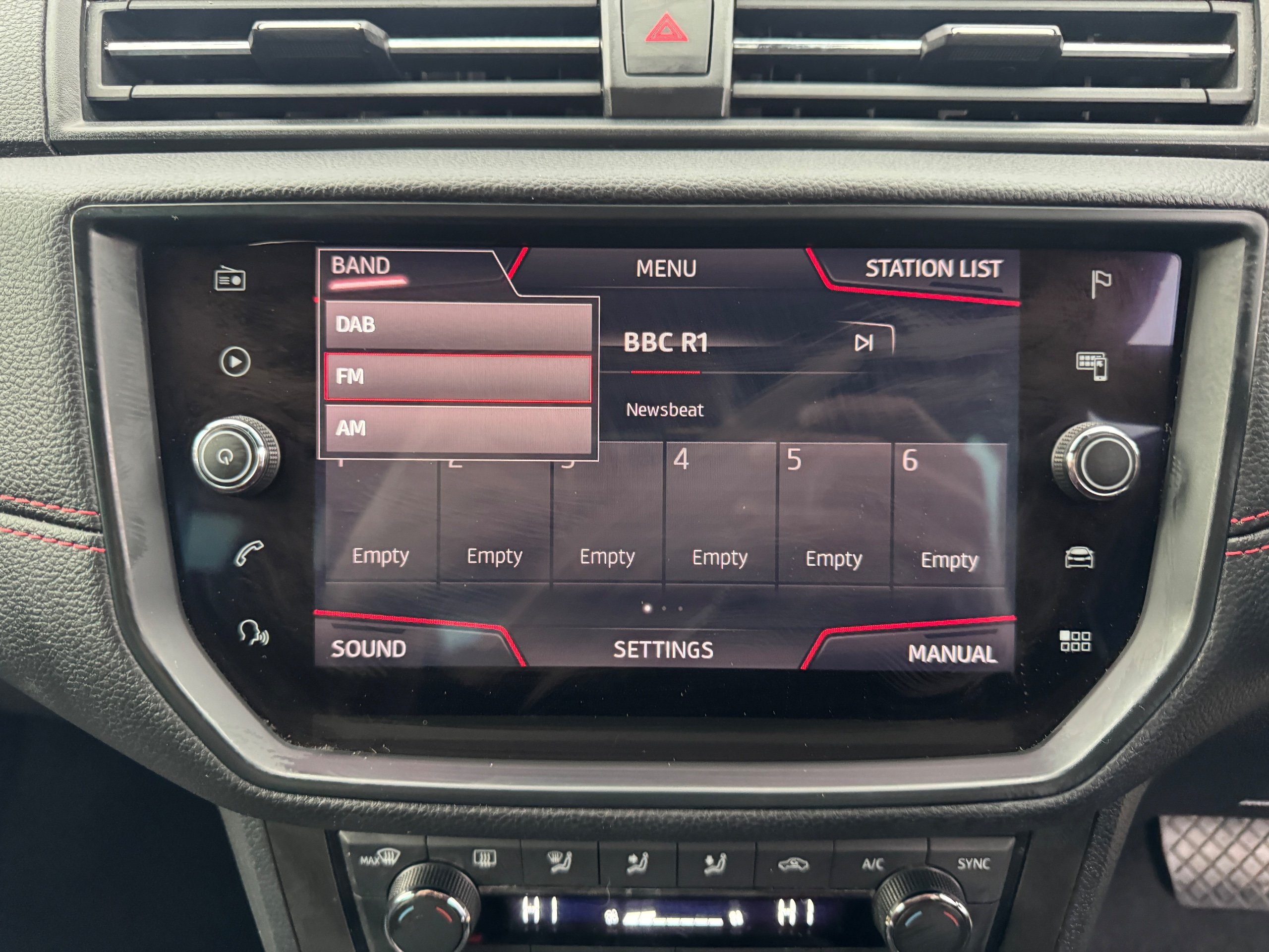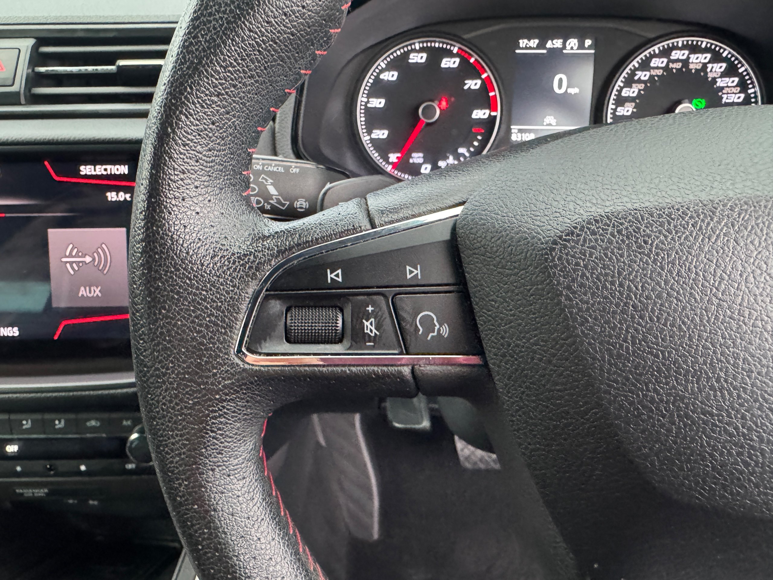 - Perforated Leather Flat-Bottomed Steering Wheel with Red Stitching and FR Logo with Leather Gear Knob